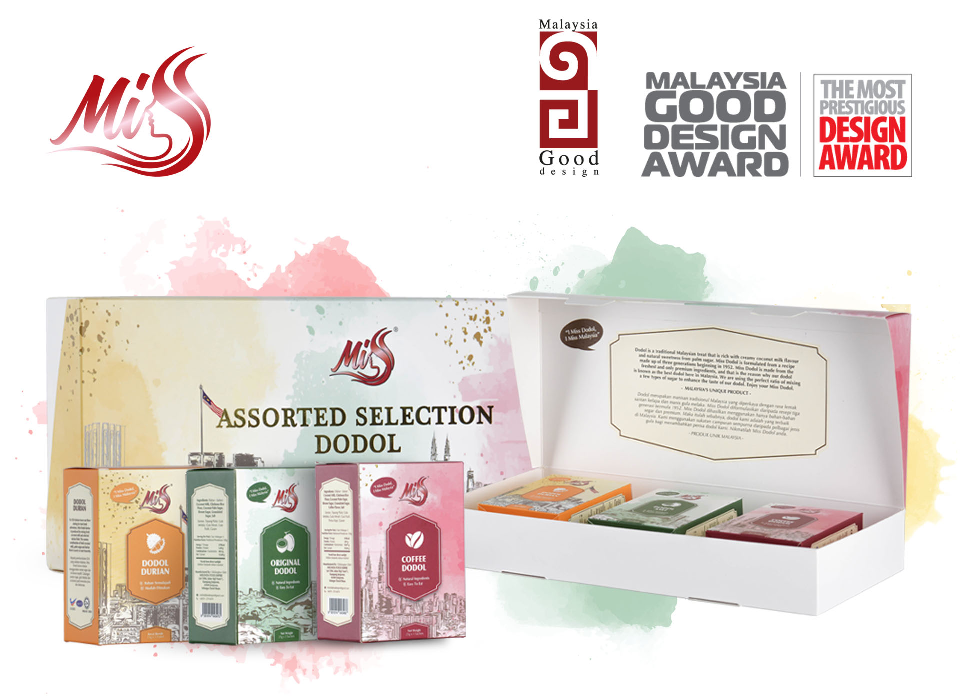 DDEC has designed the packaging of the MIS Dodol brand in individual boxes according to the flavours, as well as in the form of a gift box containing various flavours.
